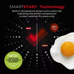 A temperature sensor is built into the non-stick coating of the frying pans that changes from bright red to dark red as soon as the pan reaches the optimum temperature.? Simply pop the pan on the hob to heat up, wait for the SmartStart tick to change to dark red and take the guess work out of cooking for perfect results every time