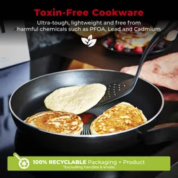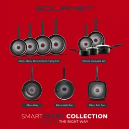 All SmartStart Gourmet pans are free from harmful chemicals such as PFOA, Lead and Cadmium. Each pan is lightweight and ultra-tough thanks to expertly crafted 3mm thick aluminium. Great heat conductivity properties and lightweight design ensures quick heat-up time with easy manoeuvrability.