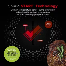 A temperature sensor is built into the non-stick coating of the frying pans that changes from bright red to dark red as soon as the pan reaches the optimum temperature.? Simply pop the pan on the hob to heat up, wait for the SmartStart tick to change to dark red and take the guess work out of cooking for perfect results every time
