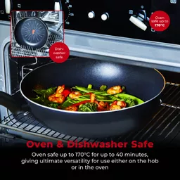 Create deliciously sizzling fajitas and flavoursome stir-fry dishes with this 28cm Wok. Featuring SmartStart technology, the red tick sensor in the non-stick coating activates at 150C, changing from light to dark red once the optimum temperature has been reached, taking the guesswork out of cooking