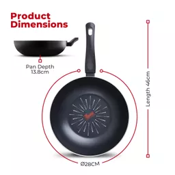 This 28cm wok provides enough cooking space for family meals and entertaining, so you can serve up sizzling fajitas and flavoursome stir-fry dishes with ease.