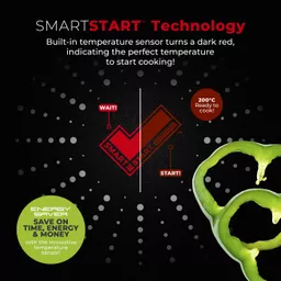 Smart Start technology activates at 150 degrees CelsiusIndicates the pan is at optimum cooking state at 200 degrees Celsius