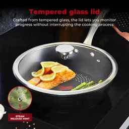 This 28cm multi-pan provides enough cooking space for family meals and entertaining, so you can serve up sizzling fajitas and flavoursome stir-fry dishes with ease. Crafted from tempered glass, the lid lets you monitor progress without interrupting the cooking process