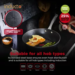 Inducto energy efficient bonded steel base heats up rapidlySuitable for all hob types including induction