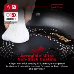 4.5mm forged aluminium with embossed cast steel handle6-layer Aeroglide Ultra coating 15x stronger than standard non-stick