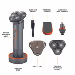 3 in 1 cordless shaver with 3 interchangeable attachmentsPrecision trimmer head for beard/moustache/sideburns