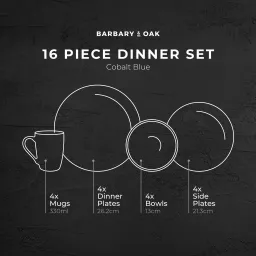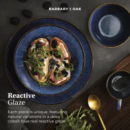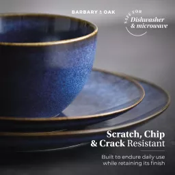 Bring artisan charm and timeless beauty to your dining table with the Barbary & Oak 16 Piece Reactive Glaze Dinner Set in Cobalt Blue. Each piece is handcrafted with a unique reactive glaze finish, resulting in subtle tonal variations that make every set truly one of a kind. Crafted from durable stoneware, it’s built for everyday use yet refined enough for entertaining. Fired at high temperatures for strength, the set is resistant to chips, cracks and scratches, ensuring long-lasting quality. Dishwasher and microwave safe, it offers practicality without compromising on style. Whether for family meals, dinner parties, or as a thoughtful gift, this set delivers both durability and elegance.