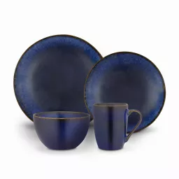 Set includes 4 dinner plates 4 side plates 4 cereal bowls and 4 mugsCobalt blue
