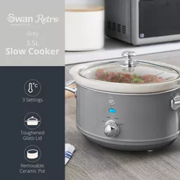 Benefiting from three settings, low, high and automatic, the Swan Retro 3.5L slow cooker has a removable ivory colour ceramic pot, which can be taken straight to the table for serving.