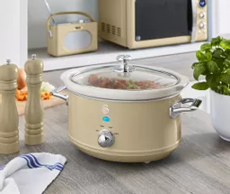 Benefiting from three settings, low, high and automatic, the Swan Retro 3.5L slow cooker has a removable ivory colour ceramic pot, which can be taken straight to the table for serving.