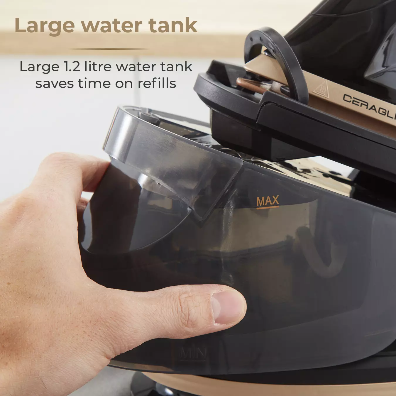 Large 1.2 litre capacity ensures you can glide through your ironing without spending a lot of time refilling