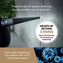 The only cleaning accessory you will ever need, this corded handheld steam cleaner will power through a range of cleaning tasks leaving your home clean and fresh. Heating up in just three minutes, the powerful cleaner keeps germs at bay by using steam temperatures up to 105 degrees penetrating grease, grime and bacteria.