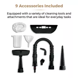 The only cleaning accessory you will ever need, this corded handheld steam cleaner will power through a range of cleaning tasks leaving your home clean and fresh. Heating up in just three minutes, the powerful cleaners keeps germs at bay by using steam temperatures up to 105 degrees, penetrating grease, grime and bacteria. It also offers up to 10 minutes of continuous steam cleaning, targeting upholstery for an intense, deep clean. The handheld steam cleaner’s lightweight design ensures comfortable operation, allowing you to target every room in the house and is complete with a lengthy 3 metre power cord for added freedom when cleaning around each room. There are 9 accessories included with an extension hose, fabric steaming tool, microfiber cloth, long nozzle attachment, nylon brush, squeegee, angled nozzle, funnel and a measuring cup to expand your cleaning collection.