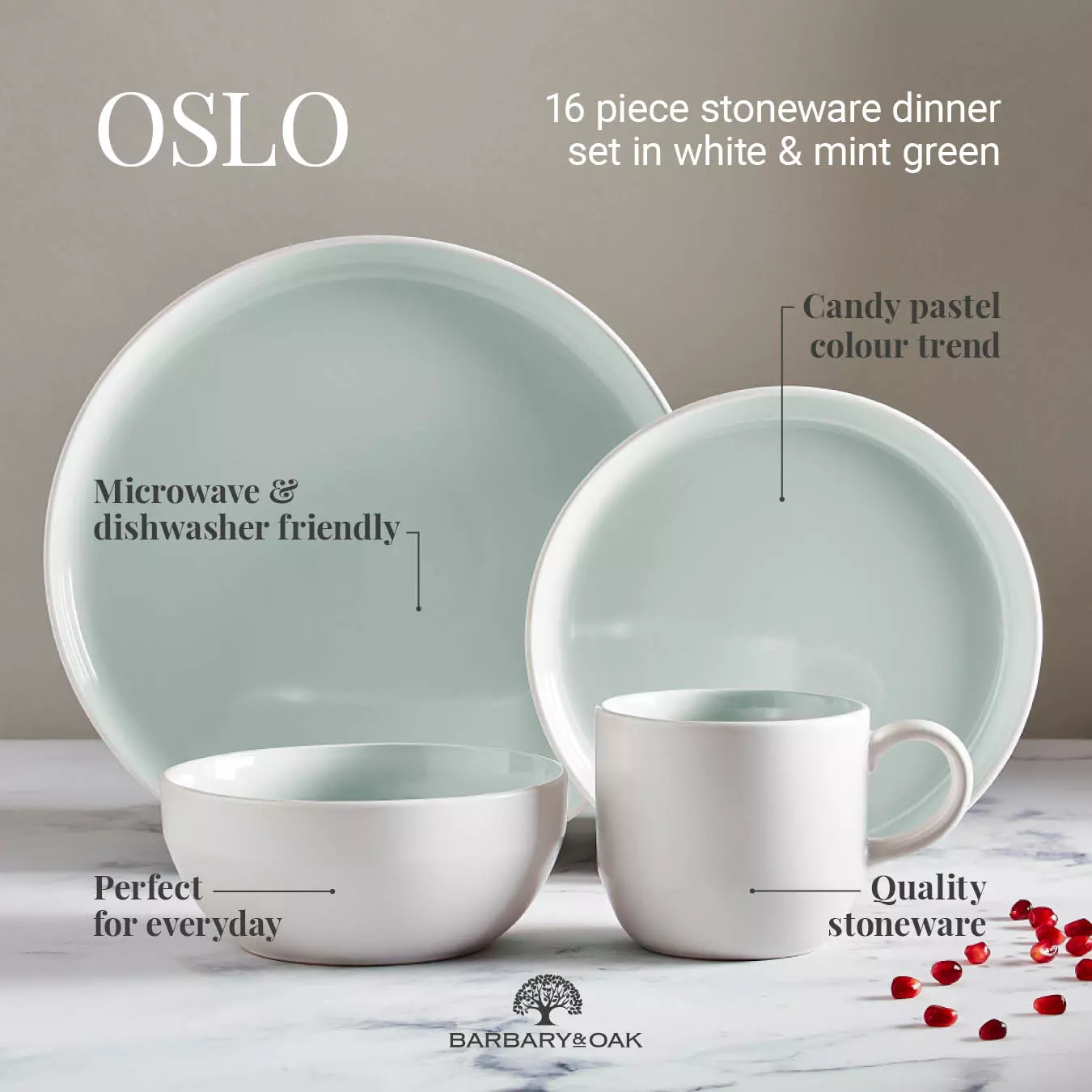 Bring some beautiful Scandinavian-inspired style to your home with the Oslo Dinnerware Set. The 16-piece set includes dining essentials for every occasion with 4 dinner plates, 4 side plates, 4 bowls and 4 mugs accommodating for family and guests.