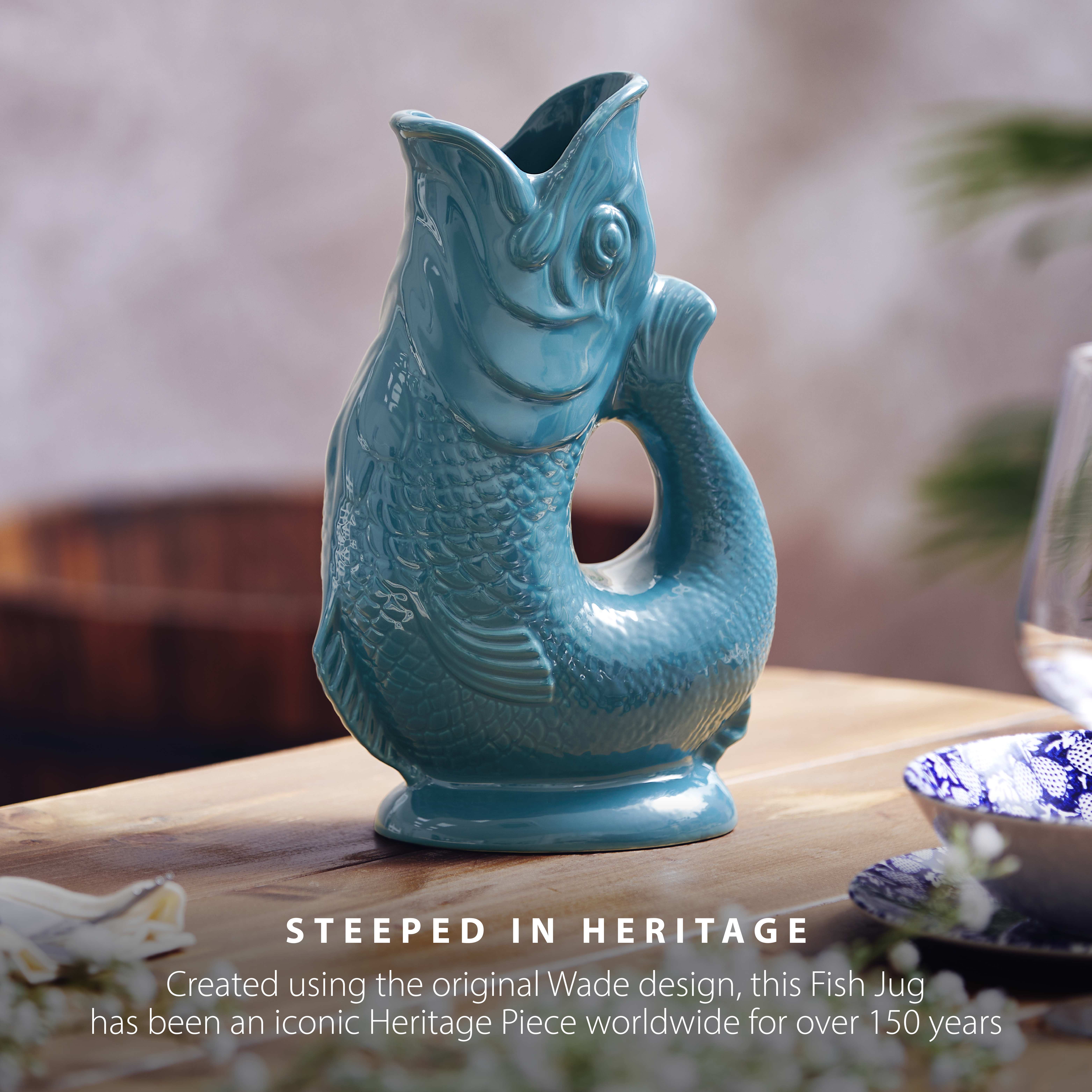 One of the hallmarks of the Fish Jug has always been the authentic glugging sound it makes whilst pouring. It adds an extra layer of charm to any table setting and works as a conversation starter. The jug will produce the sound when pouring if the jug is at least three quarters full.