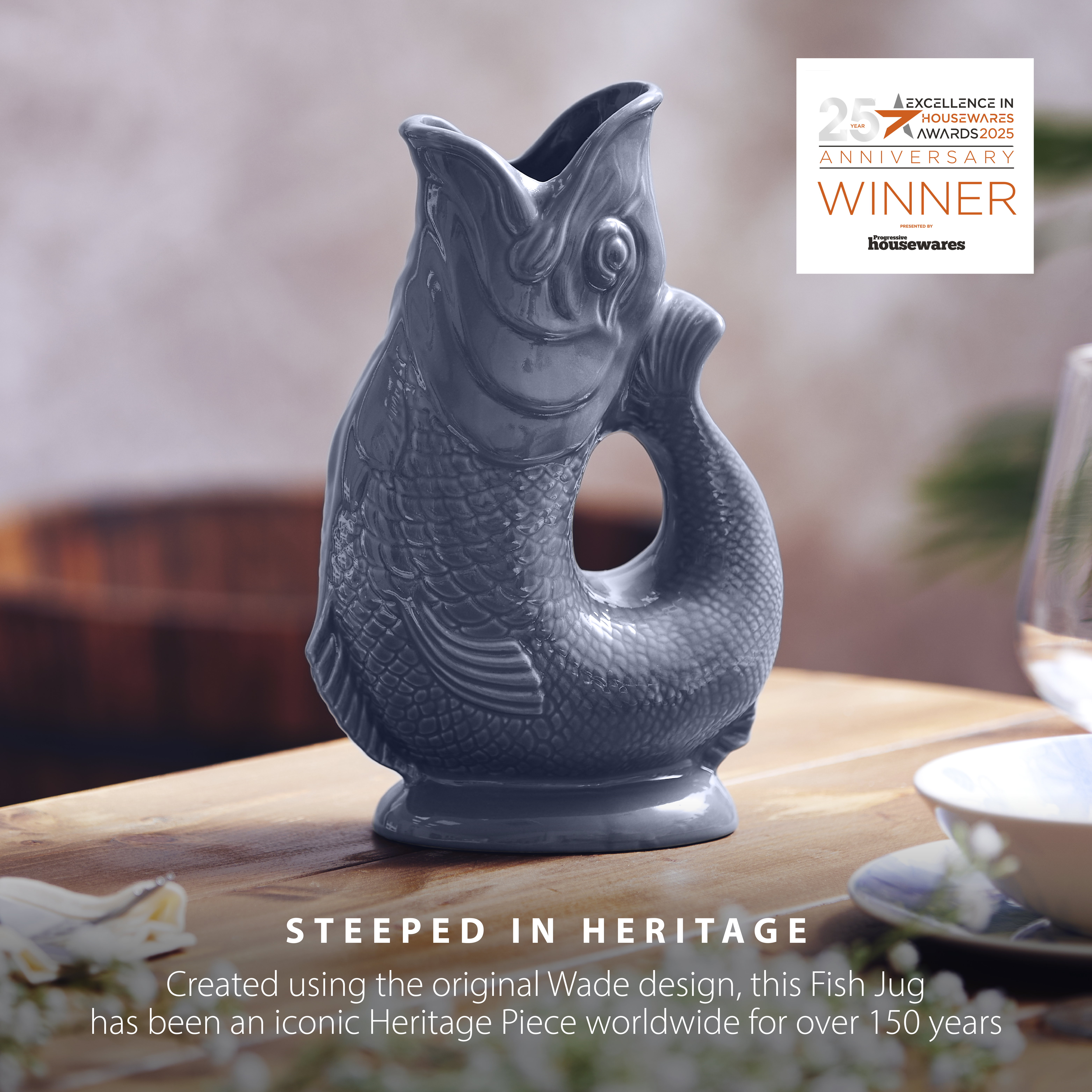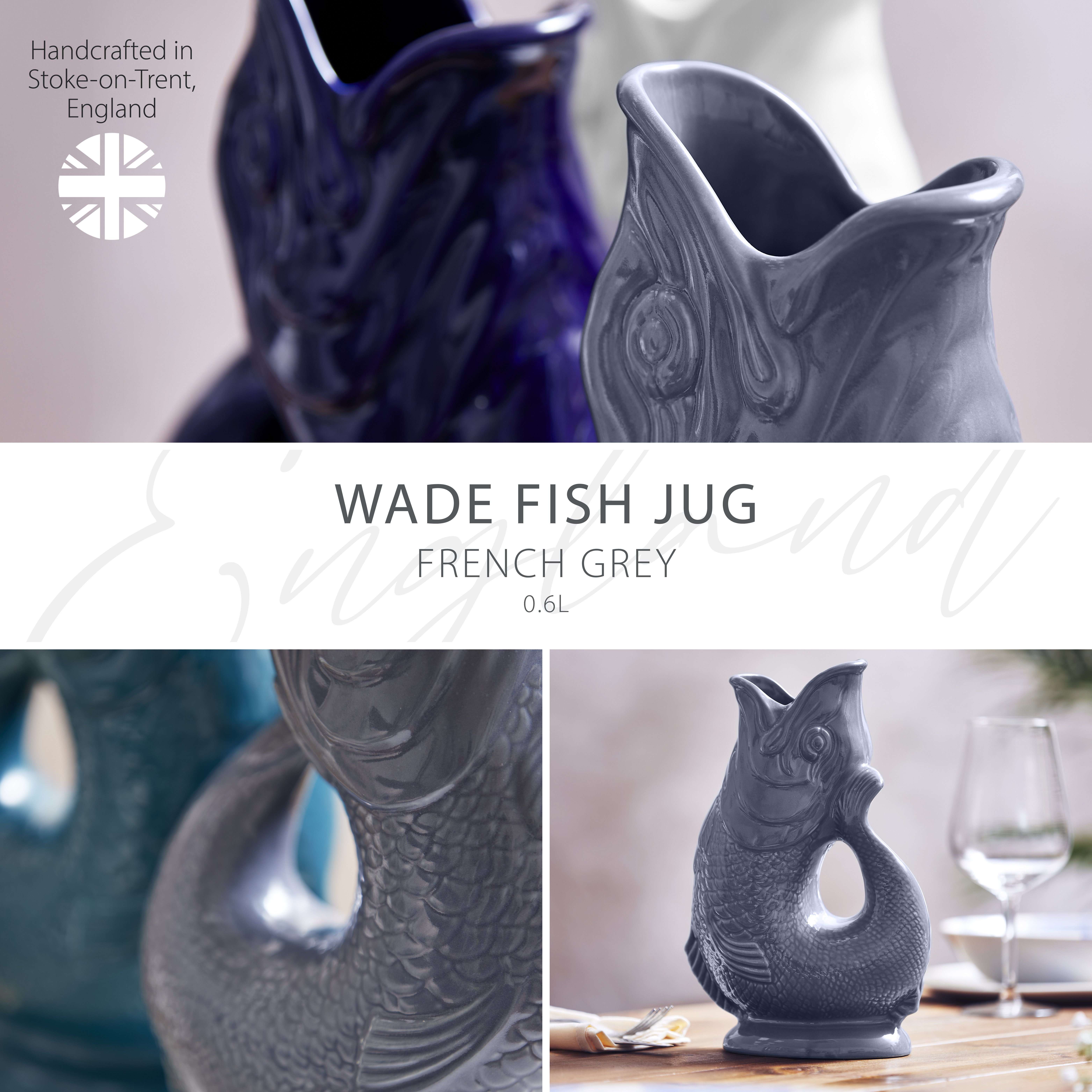 Our award-winning Fish Jug has been created using the original Wade design, a staple in homes worldwide for over 150 years. It’s handcrafted in Stoke-on-Trent at the heart of the Pottery Industry, so steeped in rich UK heritage.