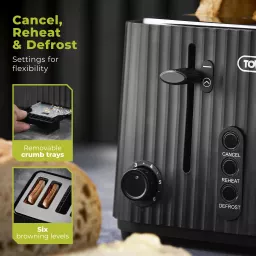 Independent dials controls on the side of the toaster let you make toast, crumpets and bagels to suit your preferences with 6 browning settings for the perfect taste and texture