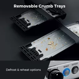 Self-centering function for even toastingRemovable crumb trays. Anti-jam function
