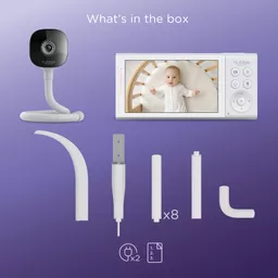 A Smart 2K UHD Baby Monitor with 5” HD Parent Unit with Advanced AI Features including Covered Face & Rollover Detection, Cry Detection, Sleep Analytics and Built In Sleep Trainer