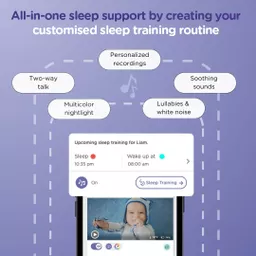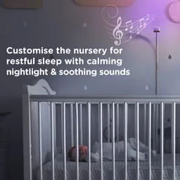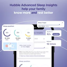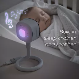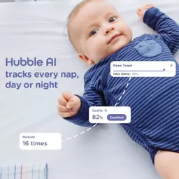 This smart system also includes a built-in night light, soother and sleep trainer, helping your baby sleep better with calming light cues and soothing sounds while giving you insights and peace of mind through the HubbleClub app.