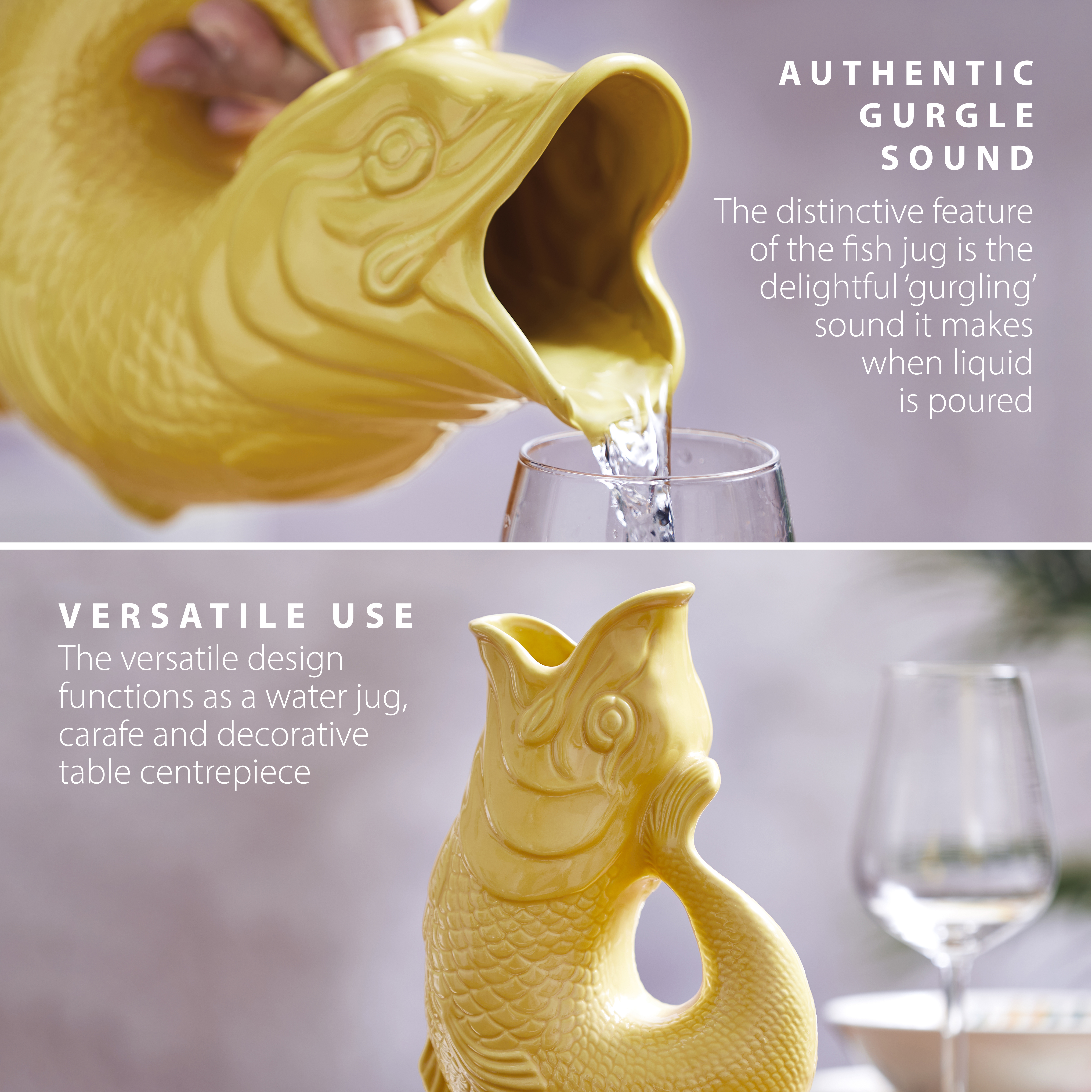 One of the hallmarks of the fish jug has always been the authentic gurgling sound it makes whilst pouring. It adds an extra layer of charm to any table setting and works as a conversation starter. The jug produces the signature sound when pouring it at least three quarters full.