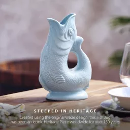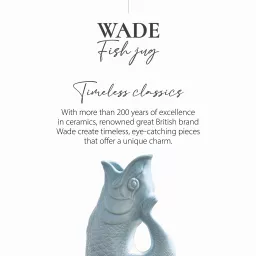 Add a touch of UK ceramic heritage to your home with this 1.2L Fish Jug from Wade. Created using the original iconic Wade design that continues to delight homes across the world for over 150 years. This fish jug is the perfect statement piece for any home. Handcrafted in Stoke-on-Trent, the heart of the pottery industry using English Earthenware, it showcases and celebrates exceptional craftmanship. The 1.2L capacity means you can use it as a water jug or wine carafe at family mealtimes or social gatherings, while also being the ideal ornament, vase or table centrepiece, it just oozes style. The unique gurgling sound has long been a hallmark for the jug and it will produce the sound when pouring the jug if it is at least three quarters full. Formed in the shape of a fish, the mouth perfectly lines up to create an easy pour spout, whilst the tail curves up to create an ergonomic handle with a comfortable grip. It is the perfect gift for any heritage brand lover and would be great for weddings, birthdays and housewarming parties. Handwash is recommended to maintain the glaze and to keep the jug looking its best.
