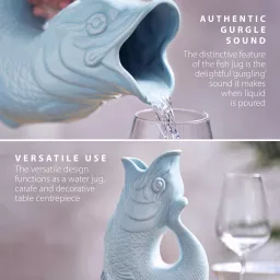 One of the hallmarks of the fish jug has always been the authentic gurgling sound it makes whilst pouring. It adds an extra layer of charm to any table setting and works as a conversation starter. The jug produces the signature sound when pouring it at least three quarters full.