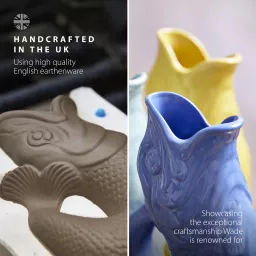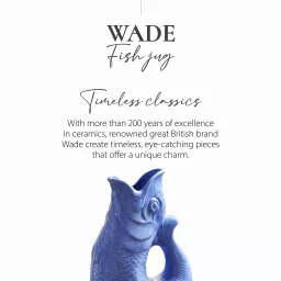 Add a touch of UK Heritage design to your home with this 0.6L Fish Jug from Wade. Created using the original Wade design that has stood the test of time for over 150 years, this jug is the perfect statement piece for any home. Handcrafted in the heart of the Potteries industry using English Earthenware it showcases and celebrates exceptional craftmanship. The 600ml capacity means you can use it as a water jug or wine carafe at family mealtimes or social gatherings, whilst it is also ideal as an ornament, vase or table centrepiece, it just oozes style. The unique glugging sound has long been a hallmark for the jug and it will produce the sound when pouring the jug if it is at least three quarters full. Formed in the shape of a fish, the mouth perfectly lines up to create an easy pour spout, whilst the tail curves up to create an ergonomic handle with a comfortable grip. It is the perfect gift for any Heritage brand lover and would be great for weddings, birthdays and housewarming parties. Handwash is recommended to maintain the glaze and to keep the jug looking its best.