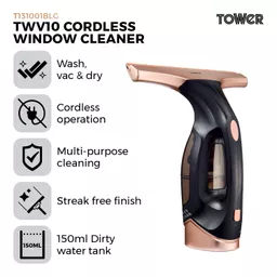 Clear off condensation and give your windows a gleaming shine with Tower’s window cleaner. The cordless cleaning companion uses powerful suction to effortlessly remove smudges and moisture droplets from your windows, shower screen and bathroom tiles.